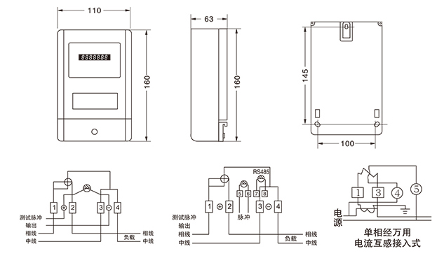 | DDS309型 单相电子式 电能表 (带RS485接口) | 1.0 2.0 | 220 | 1.5(6) | 互感式 | 450×290×390 | 20 |